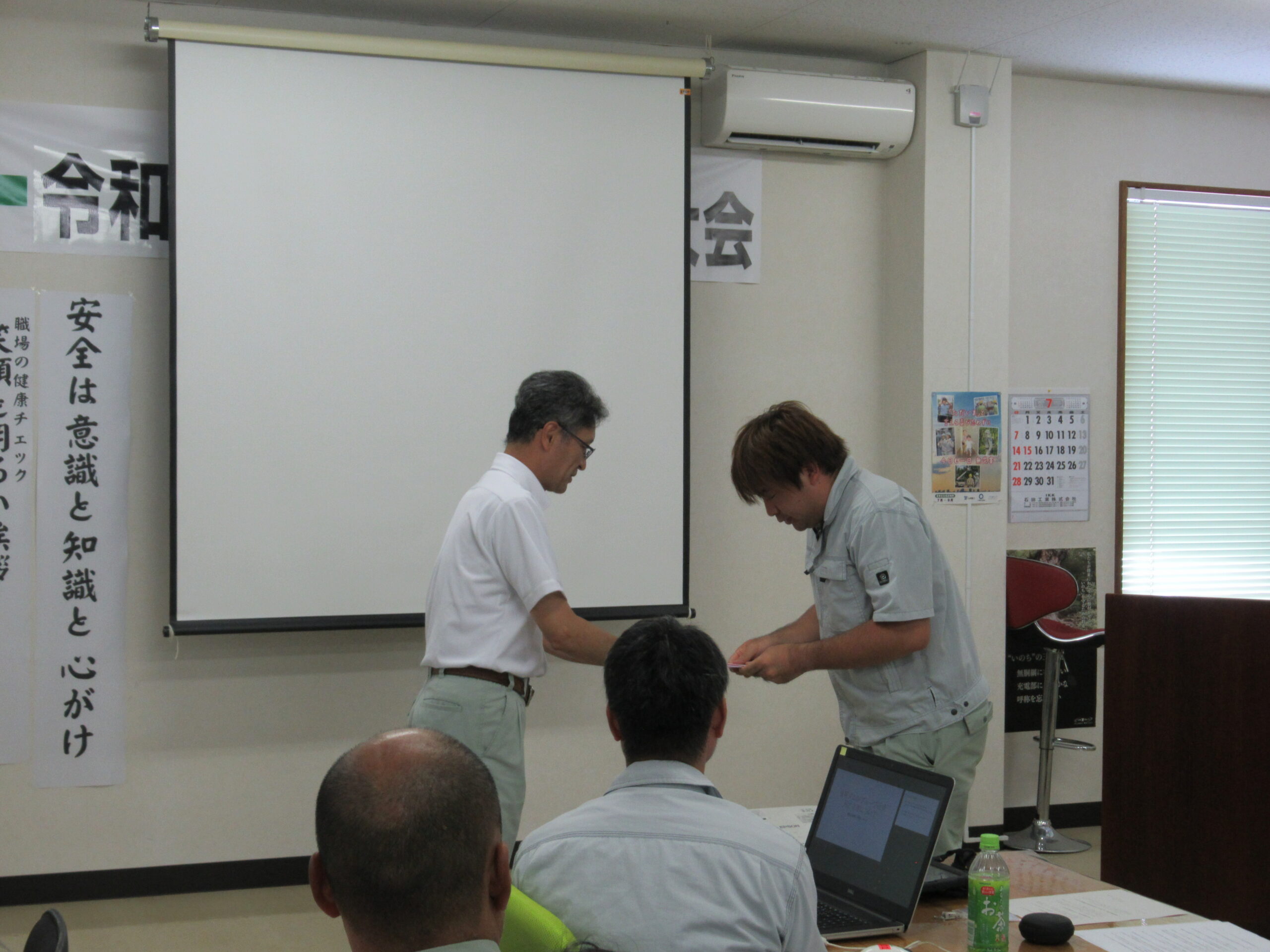 ホーム お知らせ 令和6年度 安全大会がありました 2024年7月19日 イベント 令和6年度 安全大会がありました 2024年7月16日に本社2階で「令和6年度 安全大会」を執り行いました。 大会では安全意識向上を目指し、昨年度の各現場の発表や安全宣言、安全講話を実施しました。 また、表彰もあり、一年間安全に務めた「安全賞」や、地域貢献をした「地域賞」、ほかにも「資格合格祝」や「永年勤続表彰」などたくさんの社員が表彰されました! 今年も、社員一同、安全作業に努めて参りますので、今後ともよろしくお願い申し上げます。 << 前の記事 次の記事 >> 記事一覧はこちら ›